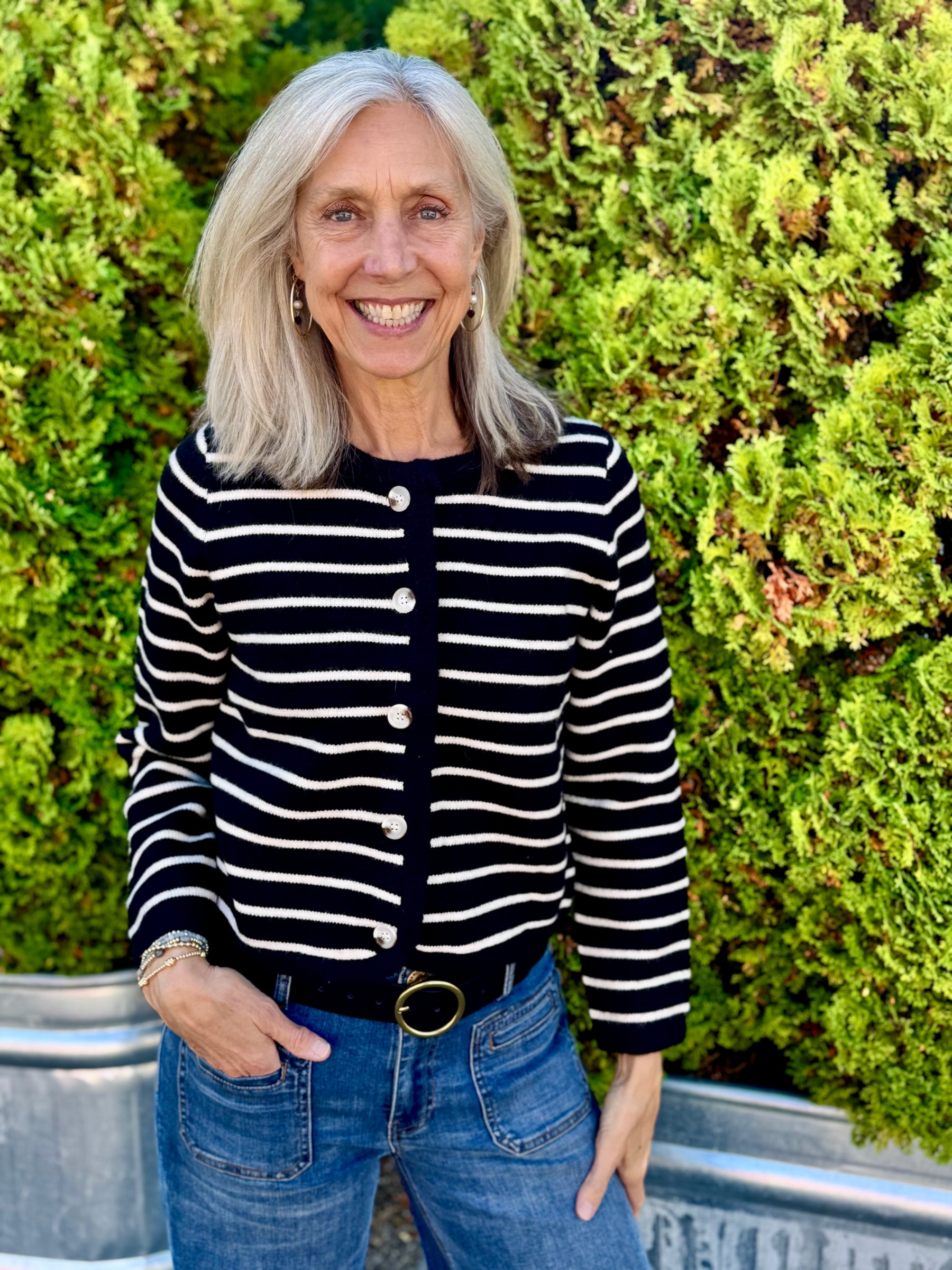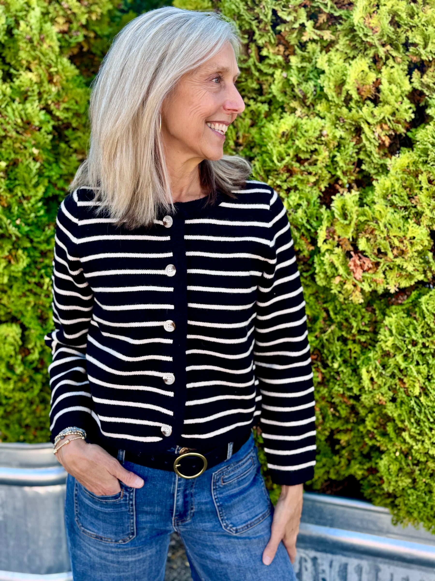 BLACK CHASTAIN STRIPE CARDIGAN SWEATER