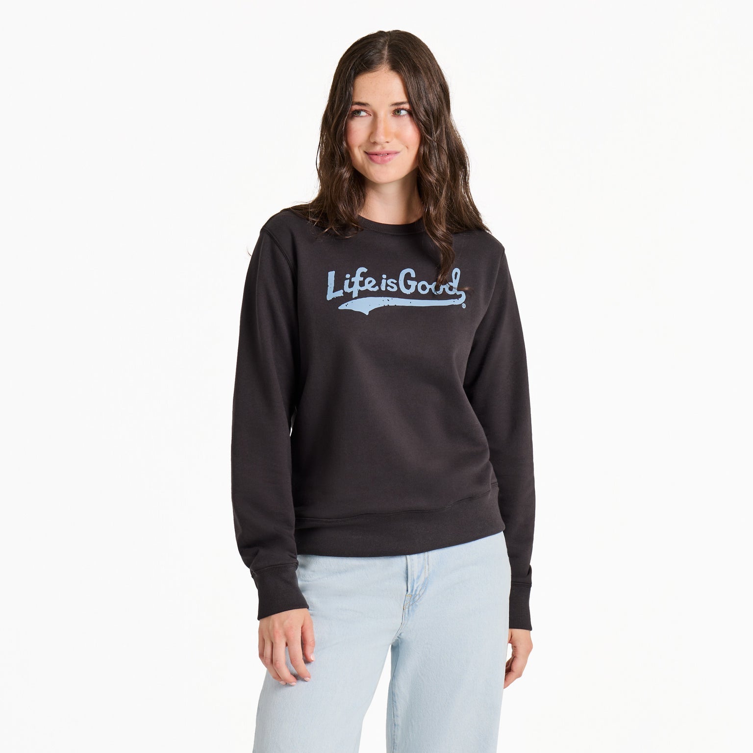 You may notice this crew is a little larger than usual-it will shrink to the standard Life is Good fit you know and love after washing!