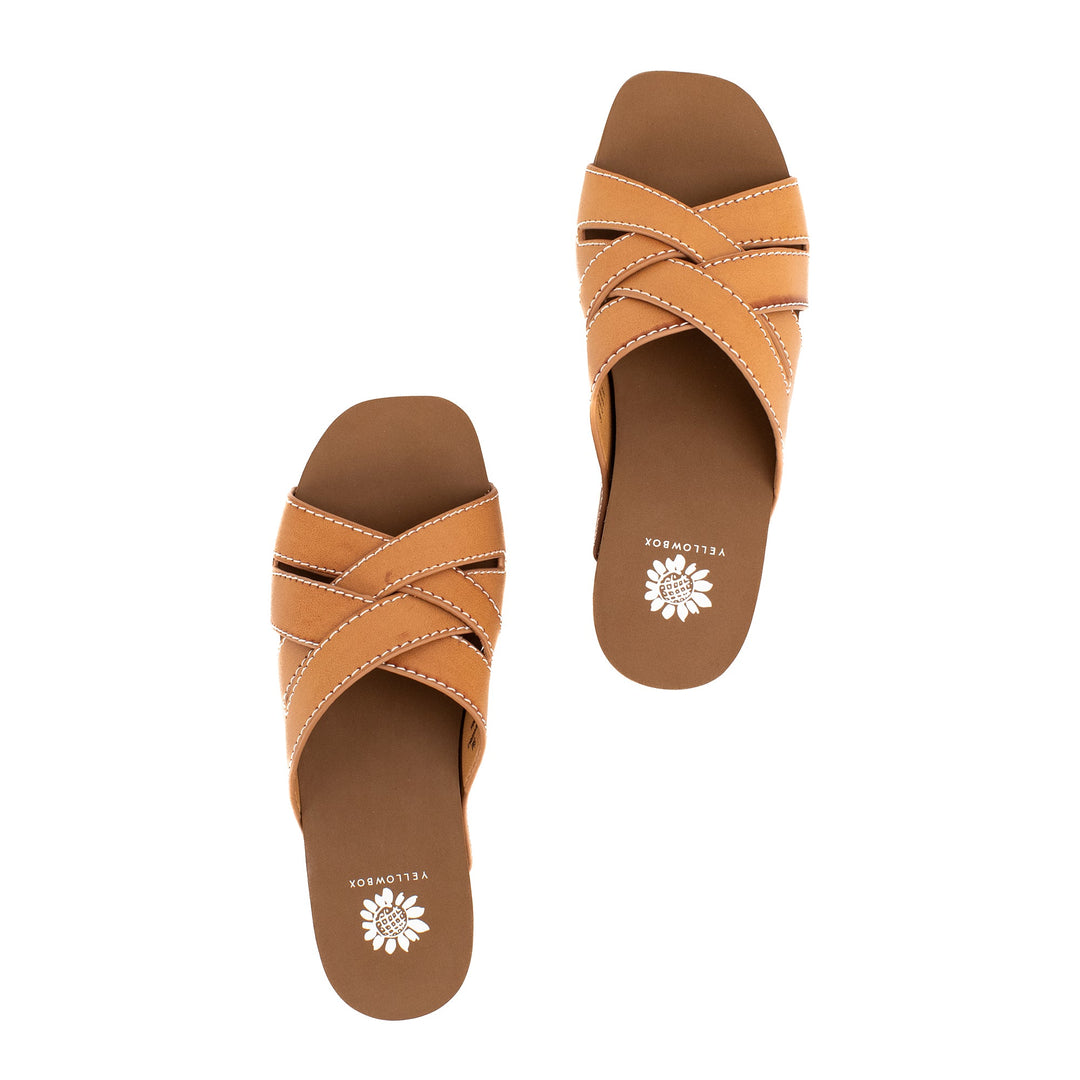 The CLEVER sandal features a new wedge shape in our popular hybrid sandal collection. The lightweight cork wedge features a modern square toe shape, set atop with our Signature Yellow Box EVA footbed for all day comfort. This classic woven slide silhouette will make this your go-to wedge.