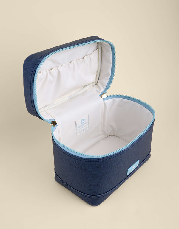 Complete your Spartina travel set with our durable, laminated cotton-and-jute Train Case, made for all your morning routine essentials. Its striped zipper pulls open to a polyester lined interior includes a slip pocket along interior lid.