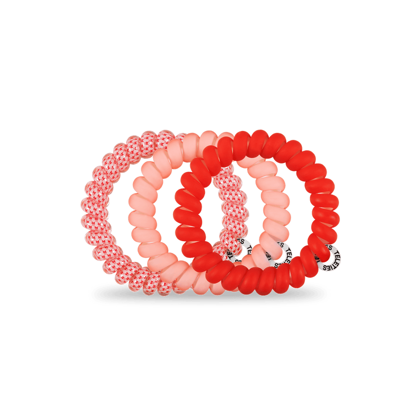 Hold your hair and enhance your style with TELETIES. The strong grip, no rip hair tie that doubles as a bracelet. Strong, pretty and stylish, TELETIES are designed to withstand everyday demands while taking your look to the next level. Sold in packs of three. The large size is 6.5cm wide x 1cm thick.