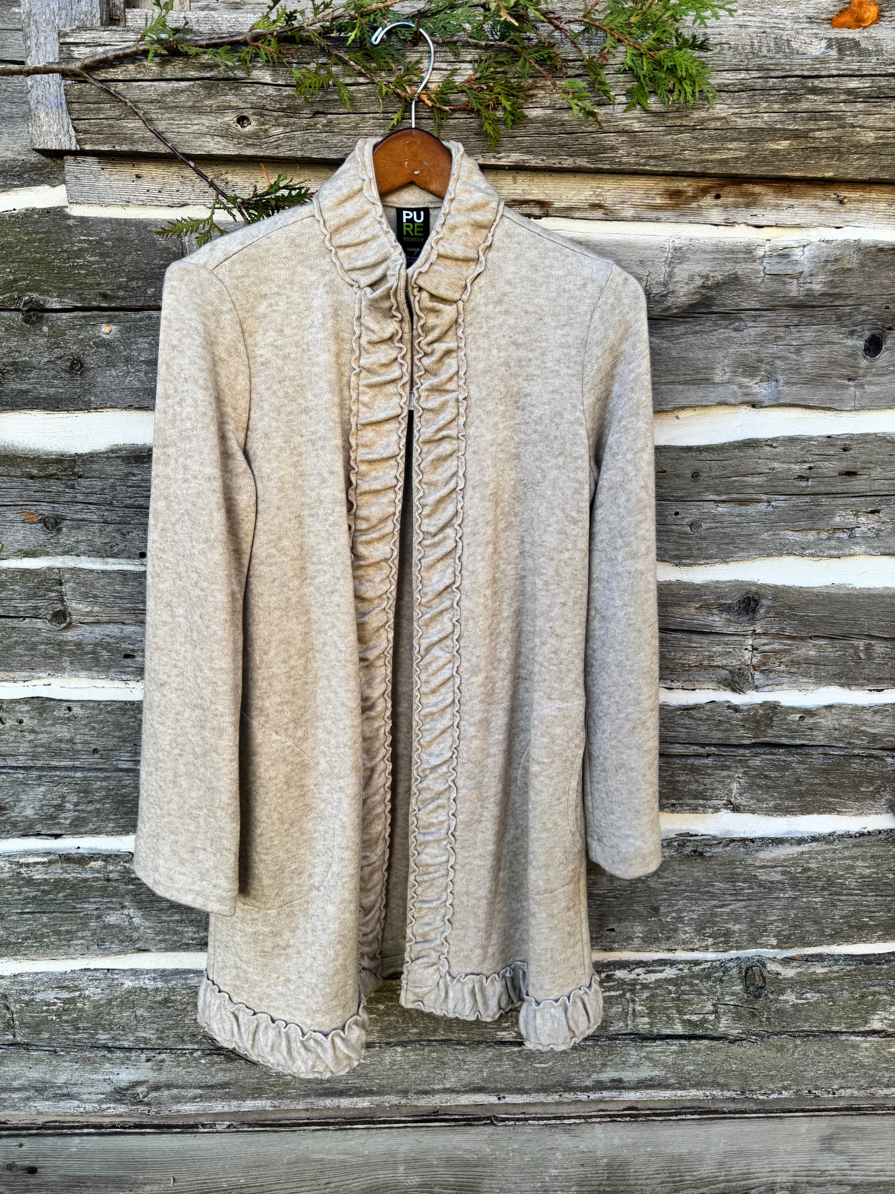 CATHERINE OYSTER RUFFLE EDGE COATIGAN